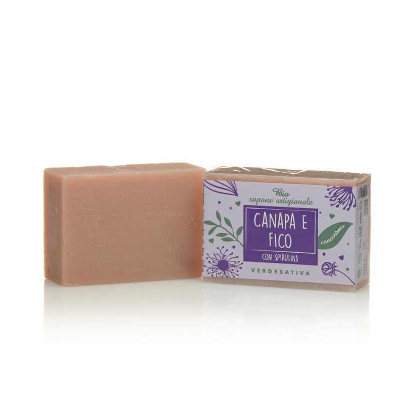 Bio sapone Canapa, Fico e Spirulina. Prodotto artigianale tagliato a mano. 100% econaturale e biodegradabile. Confezione da 100g.